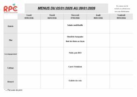 MENU DU MERCREDI 7 JANVIER
